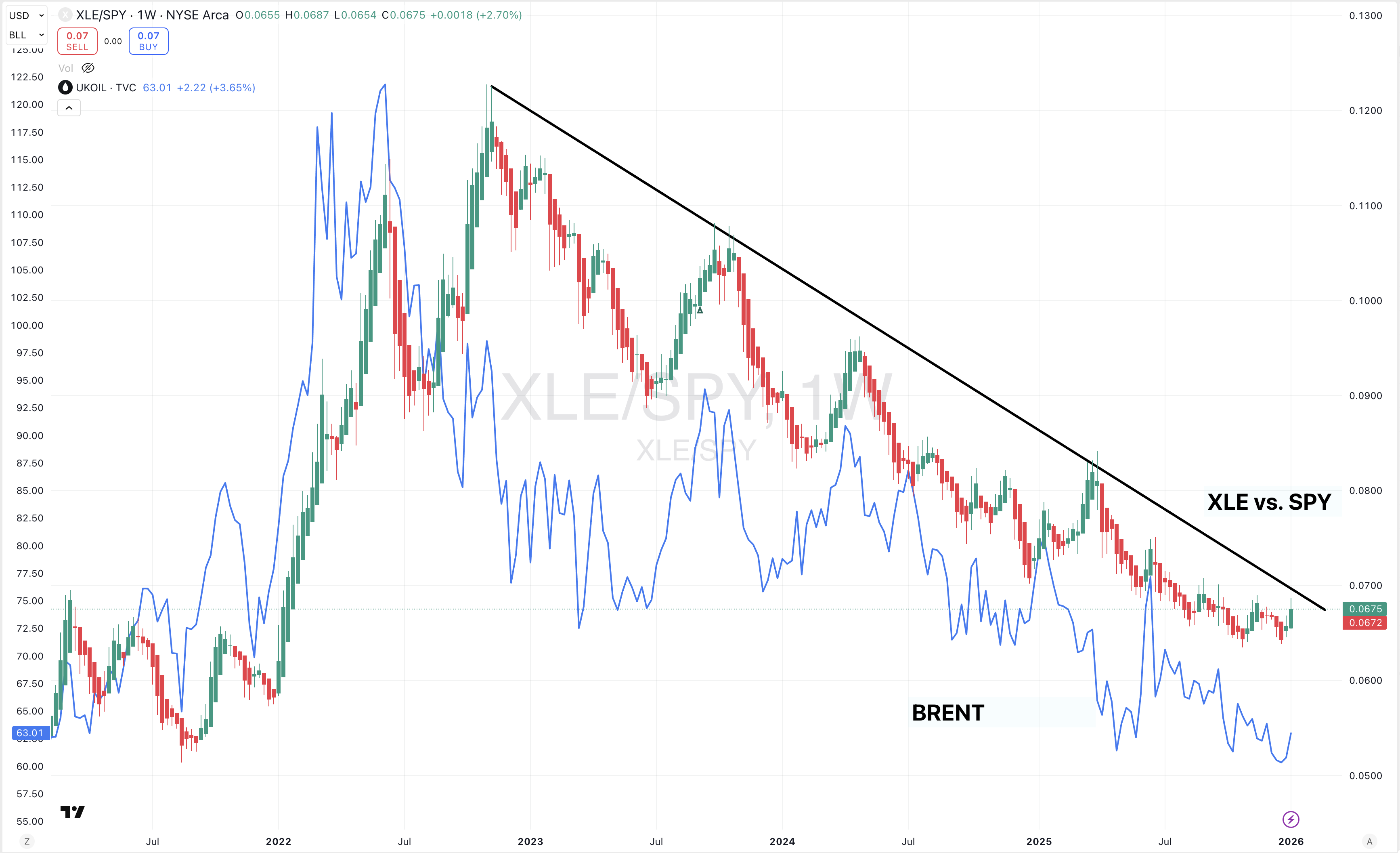 - In tandem, XLE has delivered a 500bp outperformance vs. the broad market since late Dec’25.