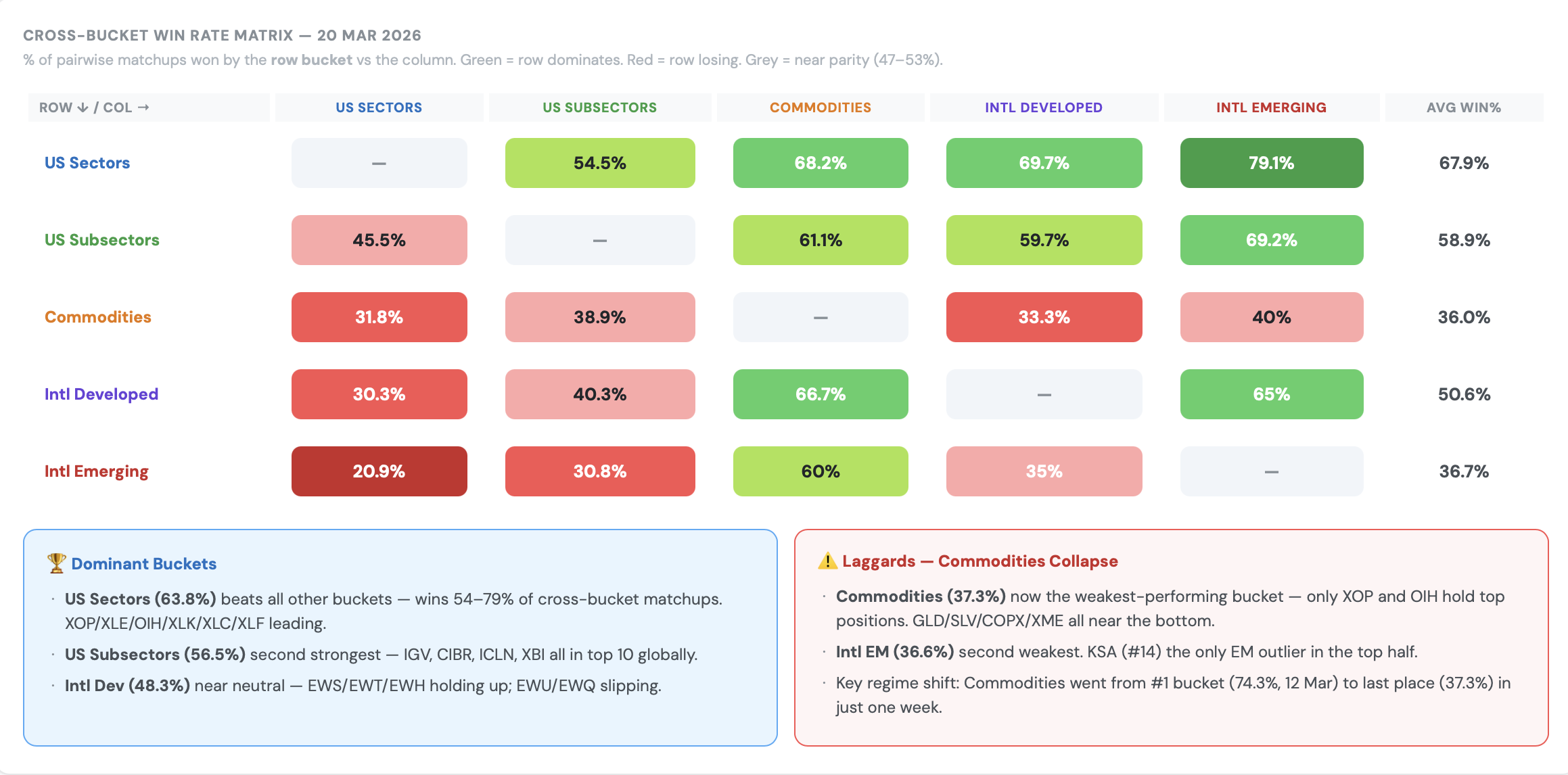 - US Sectors Still lead - In a downtrend, relative trades matter - and in the current context, despite the downtrend, it's US sectors that are leading while international markets remain in a tough spot, as do commodities (other than oil, of course).