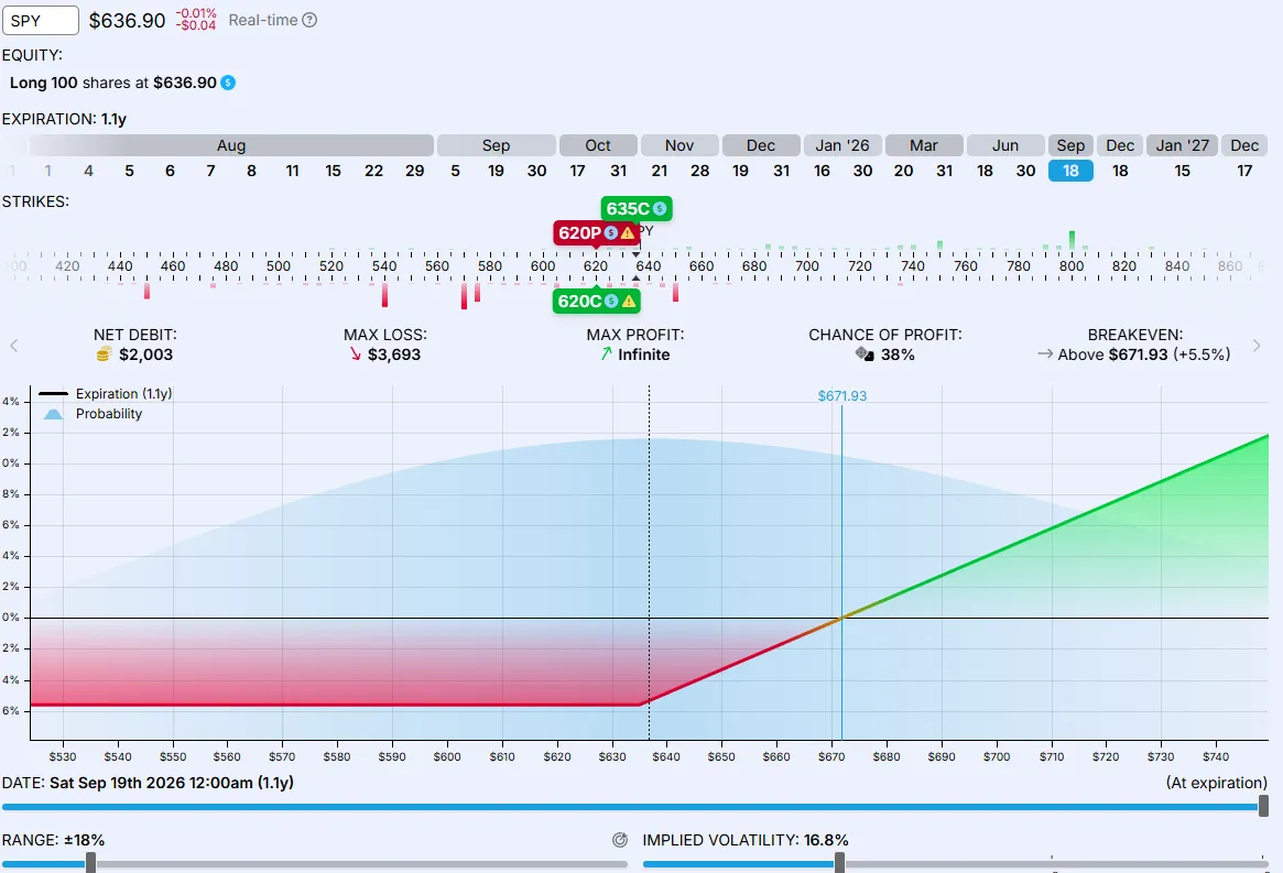 - While this mimics the pay-off of a long put structure, our focus is on protecting downside at a lower upfront cost, with a view that upside is limited .