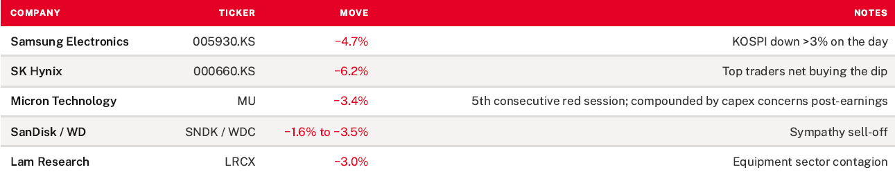 Our position is unchanged. Memory remains one of the most critical bottlenecks in the AI infrastructure stack. TurboQuant is a year-old research paper — not a deployed technology — that addresses only one narrow slice of memory demand (inference-time KV cache), introduces real computational trade-offs, and has not been adopted even by its own creator. The market sell-off in Samsung, SK Hynix, and Micron presents, in our view, a reaction disproportionate to the substance of the announcement. If anything, the fact that researchers are working hard to compress memory usage is itself evidence that memory scarcity is the binding constraint they are trying to engineer around. We continue to view memory as a core long-term beneficiary of the AI infrastructure cycle.