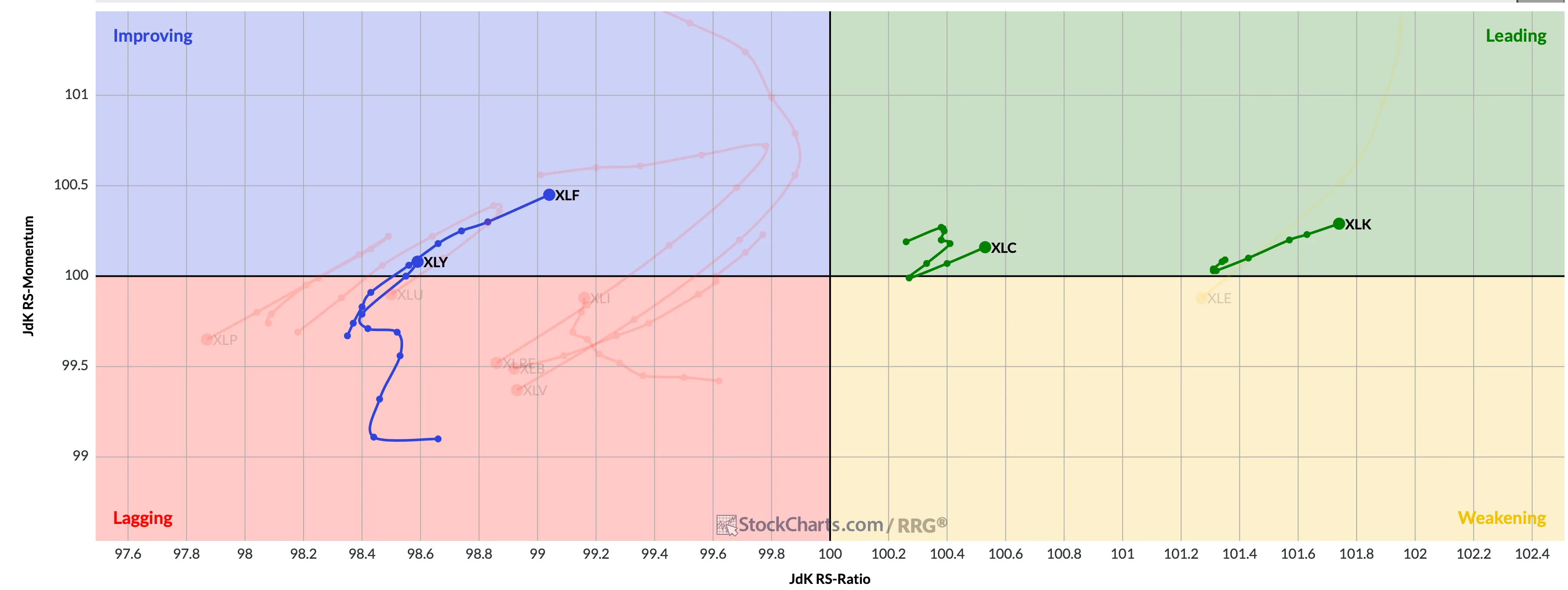 Amongst the laggards, and although still in a downtrend, notable are Visa and Mastercard that appear to be reversing following recent sharp declines.